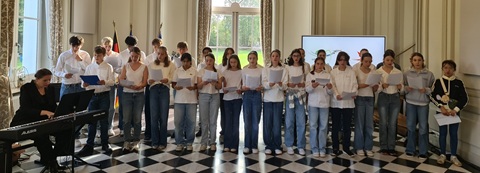 Les élèves du MLK ont chanté les hymnes à la cérémonie officielle de signature du jumelage Buc & Bad Schwalbach